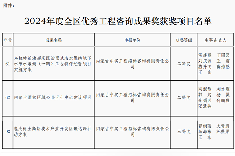 2025-04-1610219 次2025年4月16日,内蒙古工程咨询协会公布了2024年度优秀咨询成果奖获奖单位名单,我司取得两个二等奖和一个三等奖,我司专业能力和服务质量再次获得行业的认可。此次获奖,不仅体…